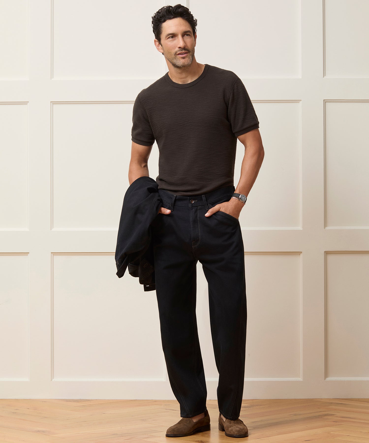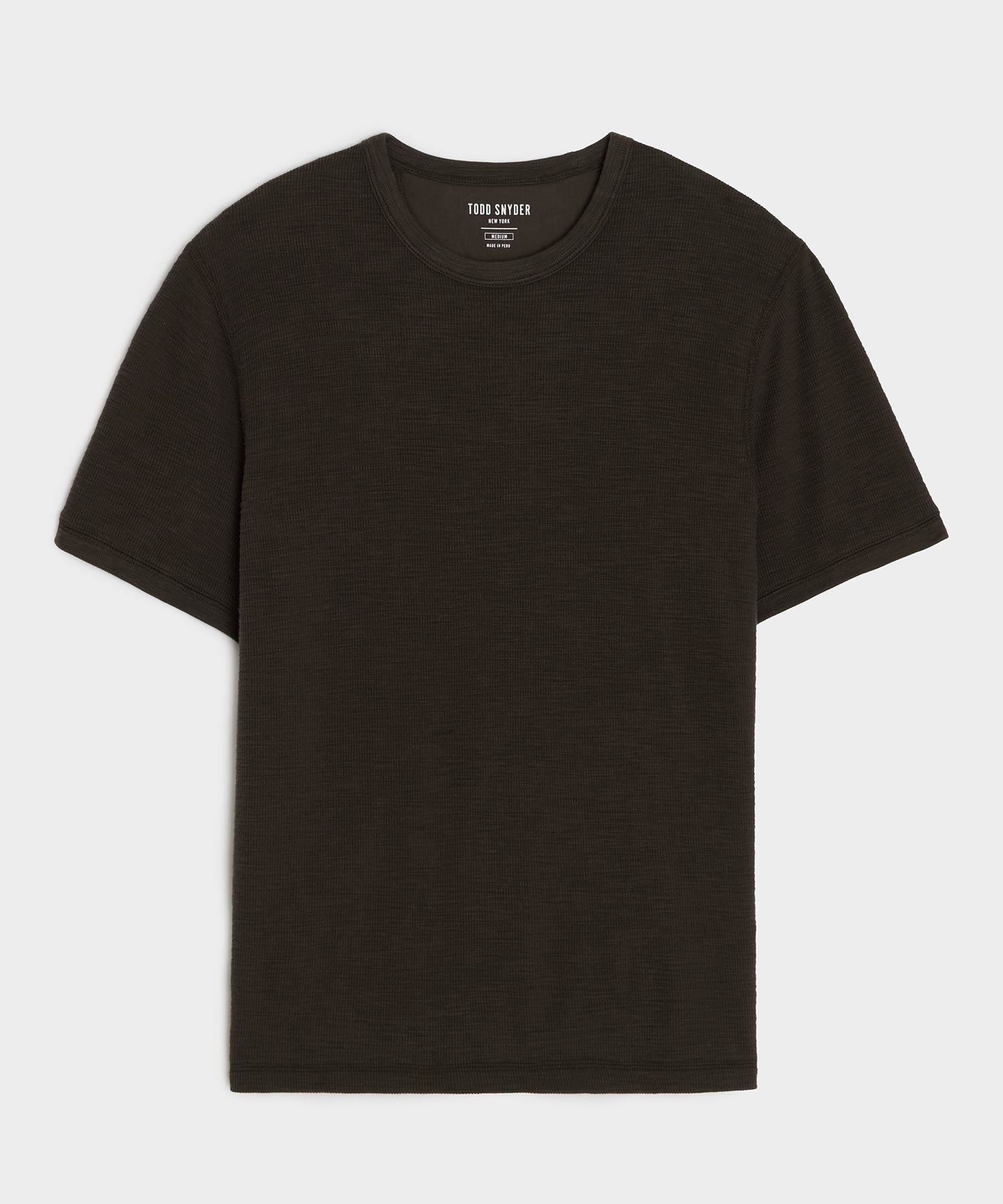 Say hello to the Waffle Tee. It’s made from Peruvian slub cotton — the cozy, micro-textured fabric has just the right amount of stretch to it. The clean, slim-fitting silhouette is inspired by vintage military thermals and features a straight hem and cover stitch detailing throughout. Not too heavy and not too light, it’s the perfect layer beneath your favorite button-down and works year-round all on its own.