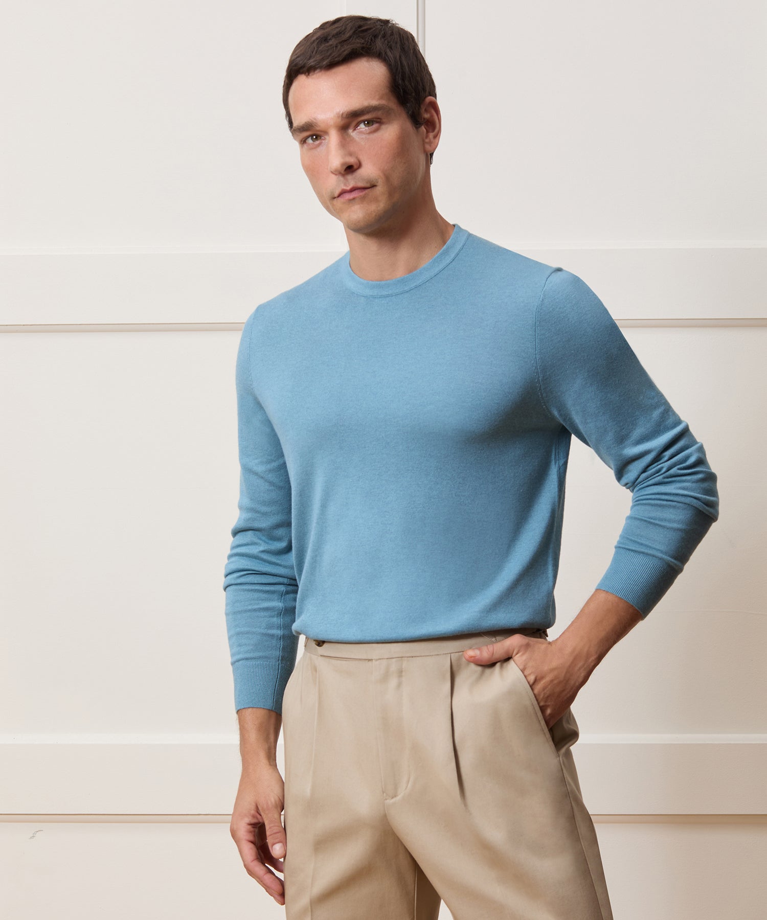 This is a luxe hybrid that combines all the casual cool of a long-sleeve tee with the polish of a cashmere sweater. It’s knit from a proprietary blend of buttery silk and super soft cashmere that’s exceptionally lightweight, refined and resistant to pilling. With clean styling and a slim, tailored fit it’s made for easy layering all year long under sport coats and suit jackets, but looks just as good solo, too.