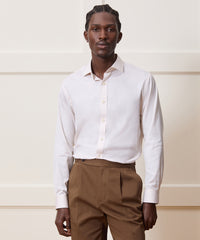 This luxurious dress shirt offers a refined update on a closet essential. Expertly constructed for the perfect fit, it’s crafted from an Italian cotton-silk, sourced by the fabric experts at Thomas Mason. Spread collars, by the way, are a bit more traditional than point collars — the collars are the same length in both, but the points themselves are further apart in a spread collar. This shirt is bound to become your new go-to for any occasion that calls for putting your best foot forward.