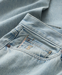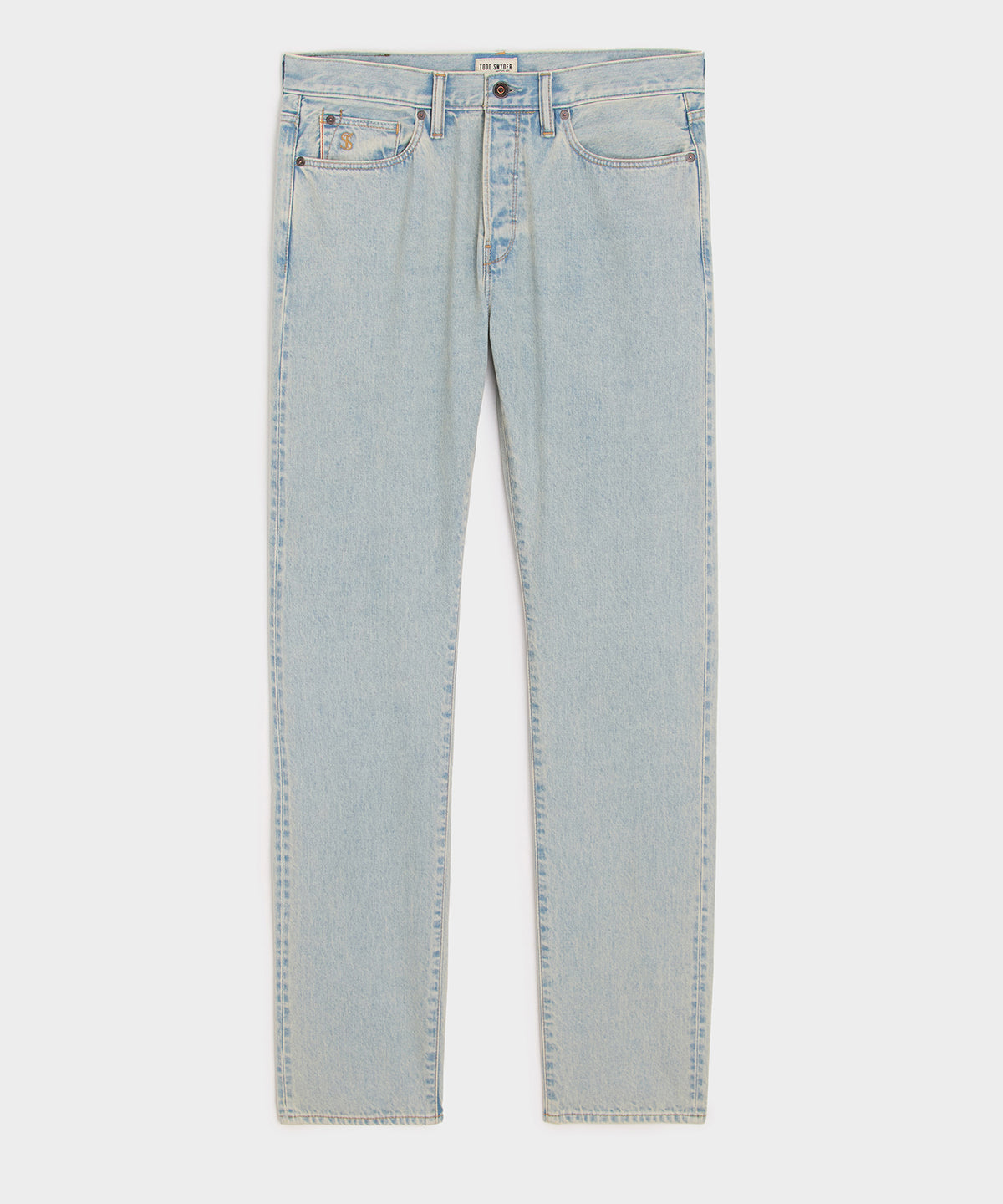 Our Selvedge jeans are 100% cotton (and 100% classic), loaded with quality, vintage-inspired details, including a shank button fly and oxidized rivets. There are also genuine selvedge outseams; when you turn up your cuff, you’ll spot that giveaway red ticking at the edge. Our Slim Fit is trim (but not tight) at the top and tailored through the thigh, tapering at the ankle. This Light Wash is a bright indigo with a subtle green cast for a vintage look and feel.
