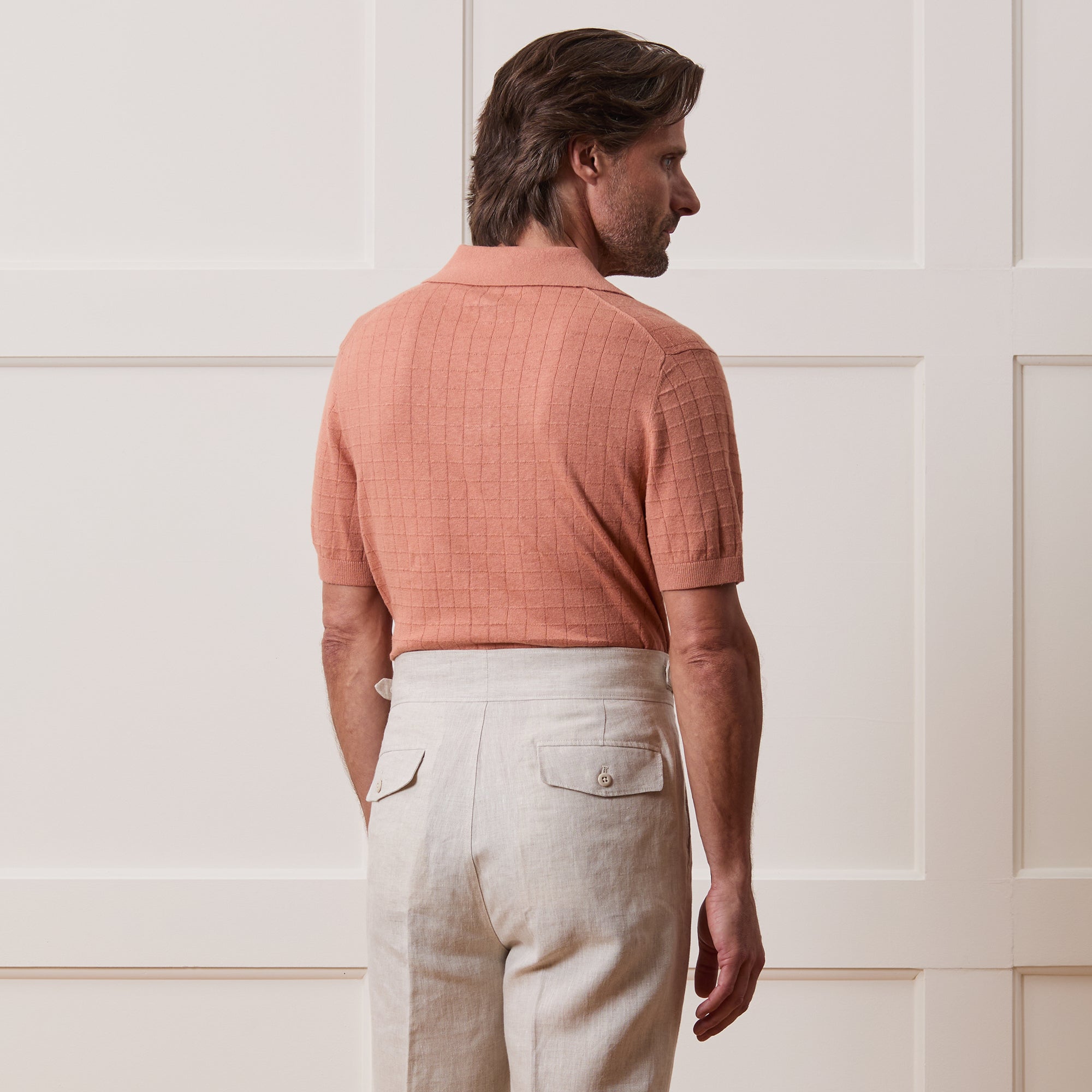 Our bestselling Montauk Polo, in a soft and breathable linen-cotton yarn that’s just the right weight to see you from now through to fall. It’s knit with a drop-stitch, which creates a subtle tonal checkered pattern that goes with everything. With an easy, slim fit and our signature Montauk collar — a buttonless style that’s often referred to as a “Johnny” collar — it’s perfect to wear on its own, or to add a pop of texture beneath a jacket or sport coat.