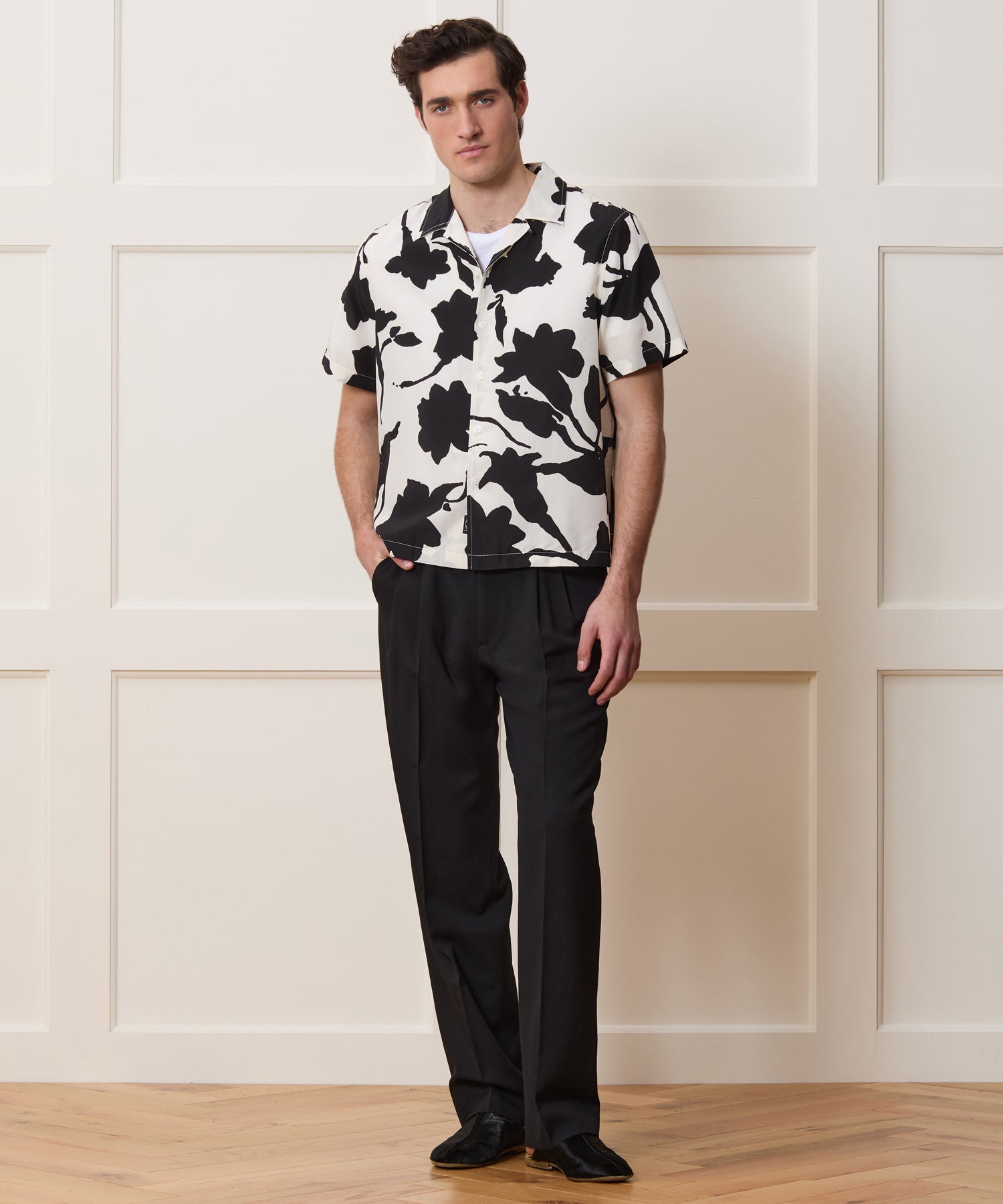 Effortlessly cool. This Camp Collar Shirt is crafted from a refined silk-cotton fabric with a lightweight, airy feel. It’s printed in shades of black, green and tan, in a bold, abstract triangle pattern based on hand-painted artwork. With a boxy fit, it’s the perfect vacation shirt for days when you want something easy to pop on that still makes an impact — wear it all on its own, or open over a tee or tank.