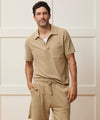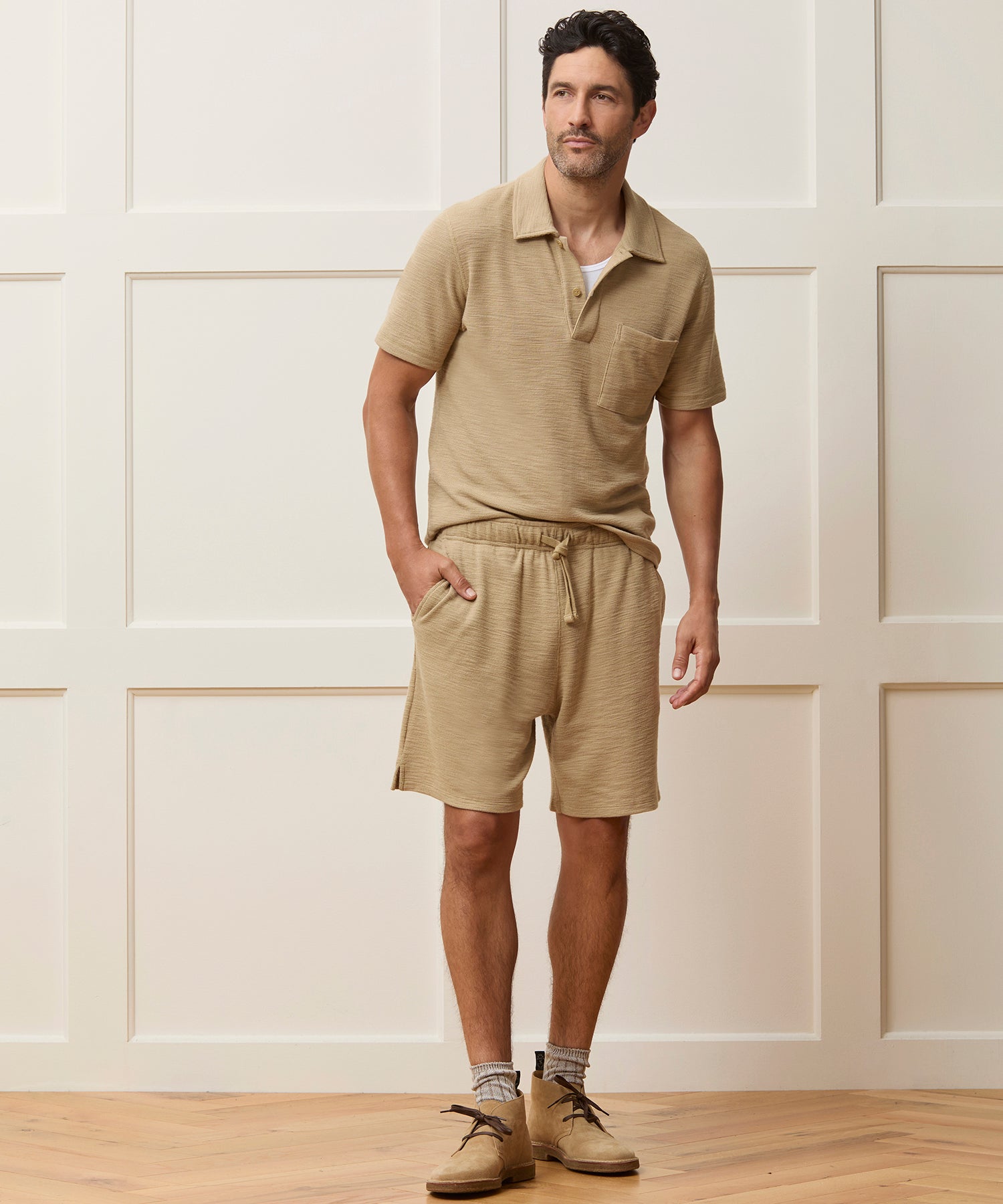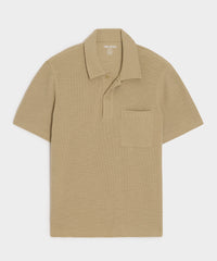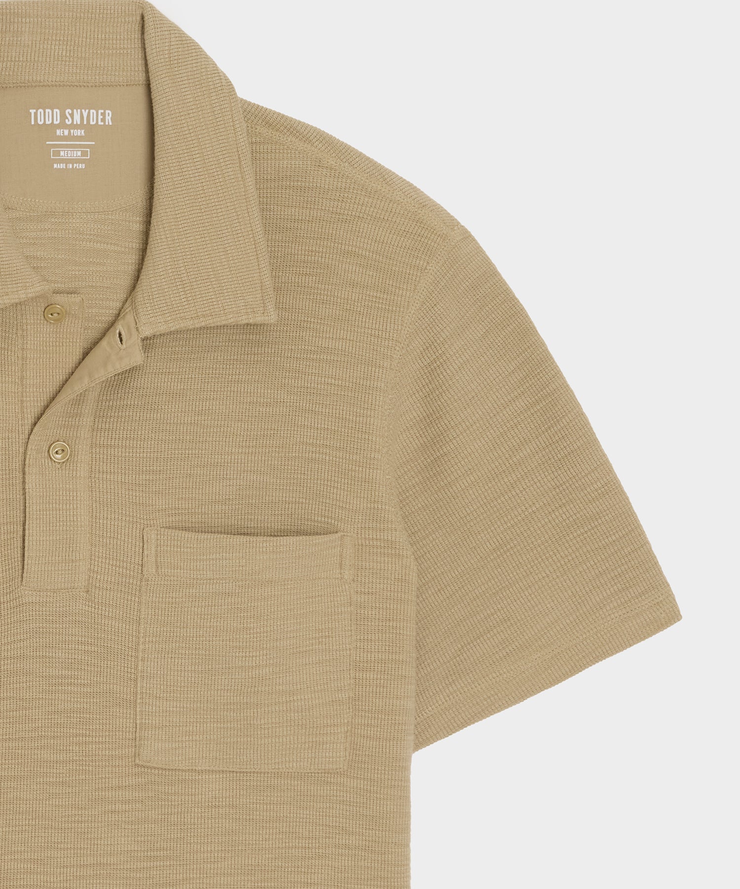 This chic update on the classic polo is made from Peruvian slub cotton, in a soft micro waffle with just the right amount of stretch. The waffle fabric, durable 4-needle flatlock stitching at the seams and the clean silhouette are all inspired by vintage military thermals. Not too heavy and not too light, it’s the perfect pick to wear solo when it’s warm and layered under a jacket when the weather cools down.