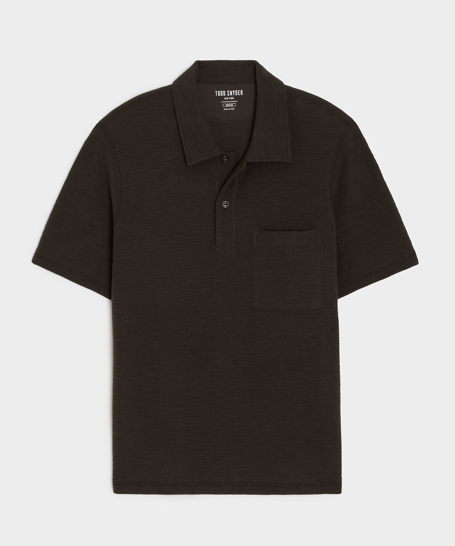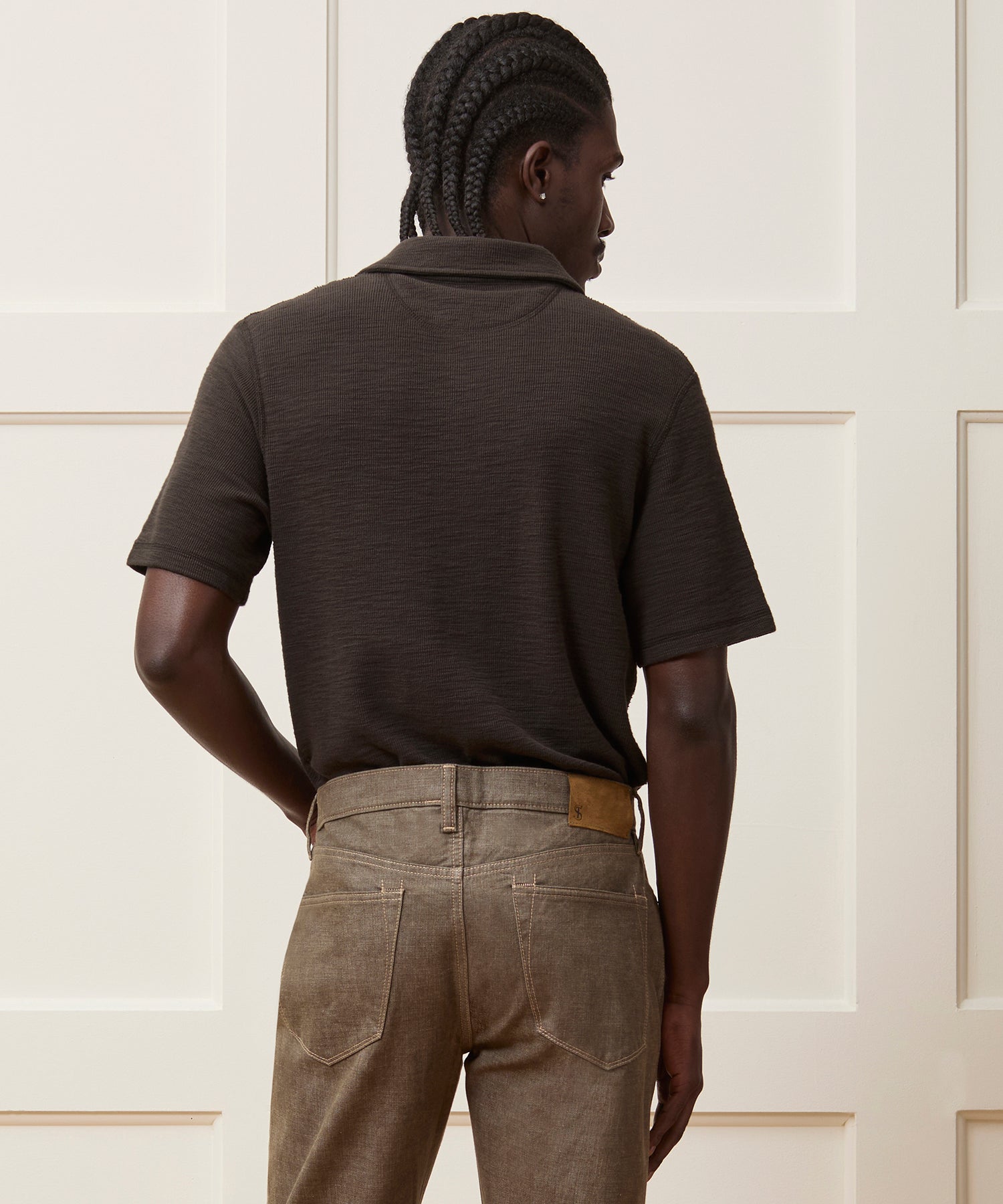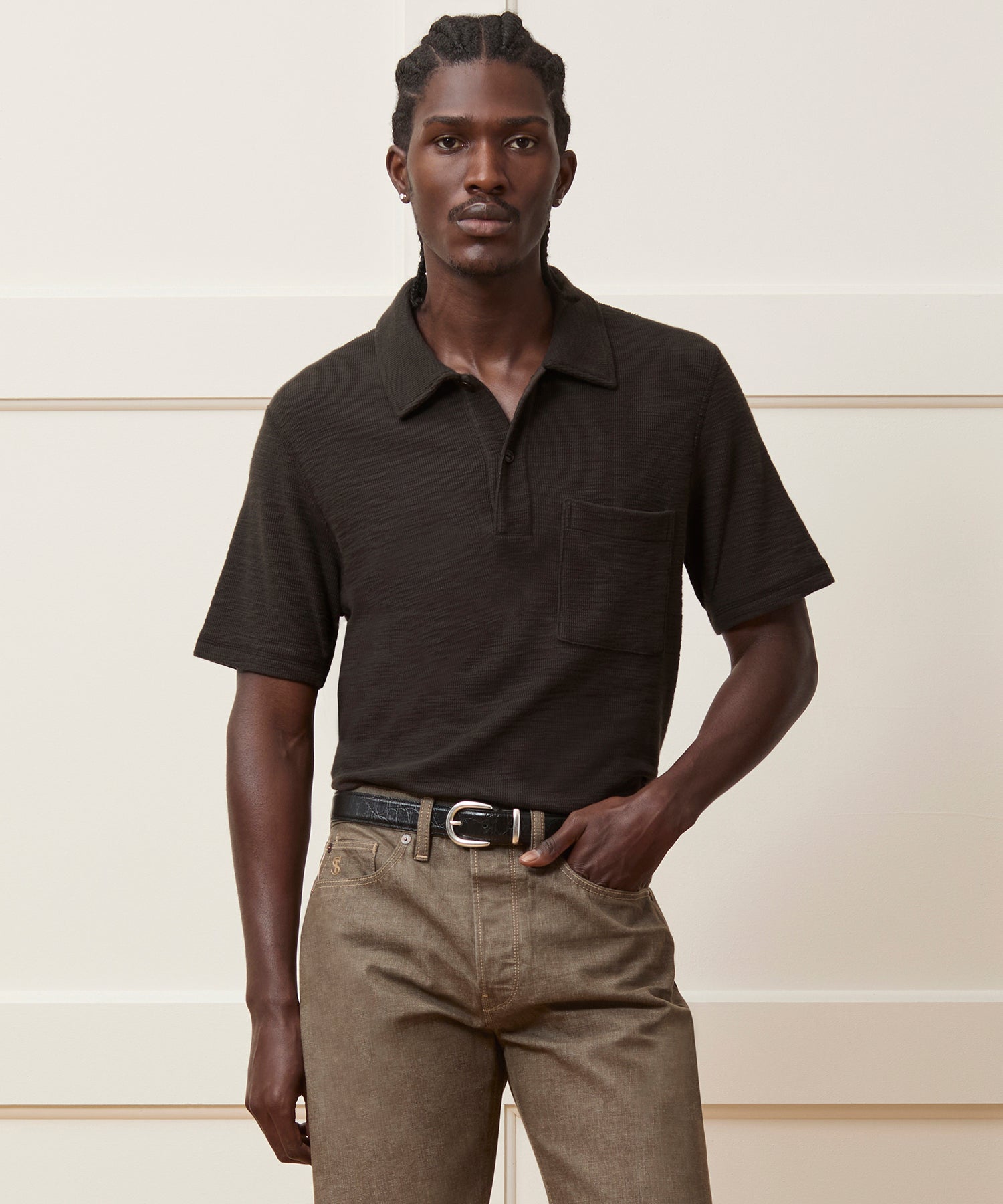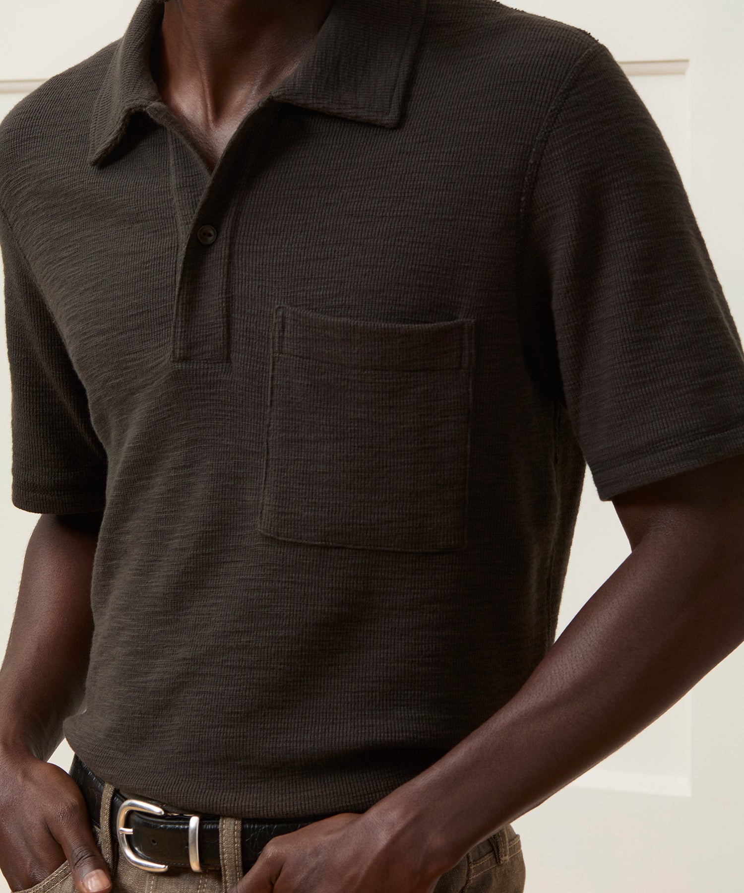 This chic update on the classic polo is made from Peruvian slub cotton, in a soft micro waffle with just the right amount of stretch. The waffle fabric, durable 4-needle flatlock stitching at the seams and the clean silhouette are all inspired by vintage military thermals. Not too heavy and not too light, it’s the perfect pick to wear solo when it’s warm and layered under a jacket when the weather cools down.