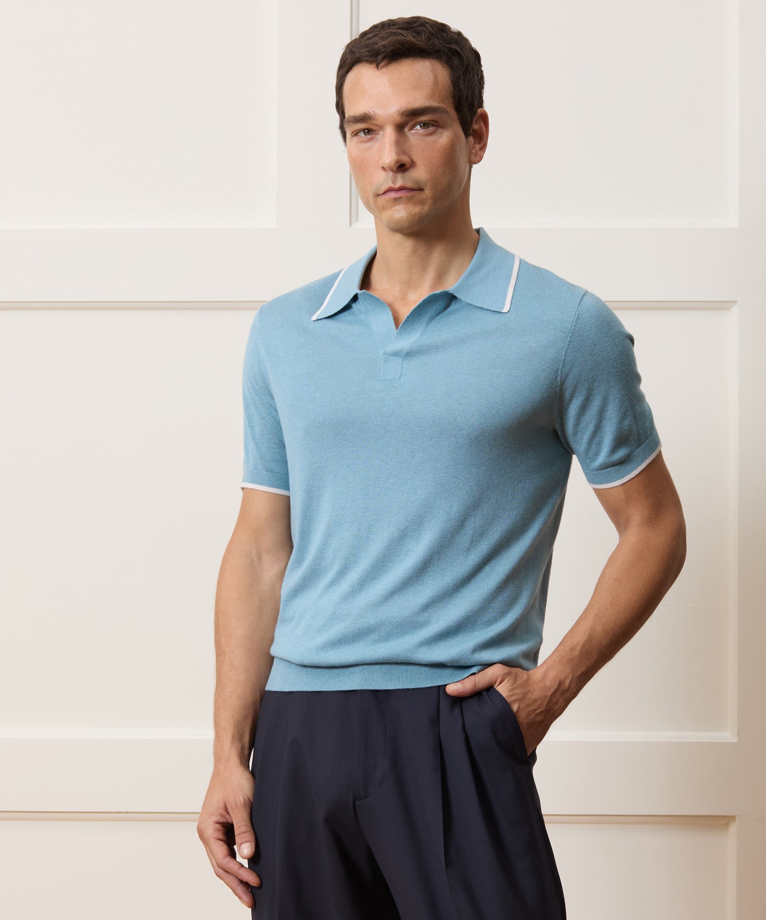 Our classic Montauk silhouette in a luxe new yarn. This lustrous, proprietary blend of buttery silk and super soft cashmere is exceptionally lightweight and refined — AKA perfect worn solo, or layered under sport coats and suit jackets. Bonus: the added silk helps it pill less than pure cashmere, so it’ll always look fresh. The fit is perfect: tailored, but full enough to layer, with a buttonless collar; the placket is a little long, for a casual look, but tacked partway to make it easy to wear to the office. Tonal tipping at the ribbed trim gives this elevated basic a chic, retro-inspired look.
