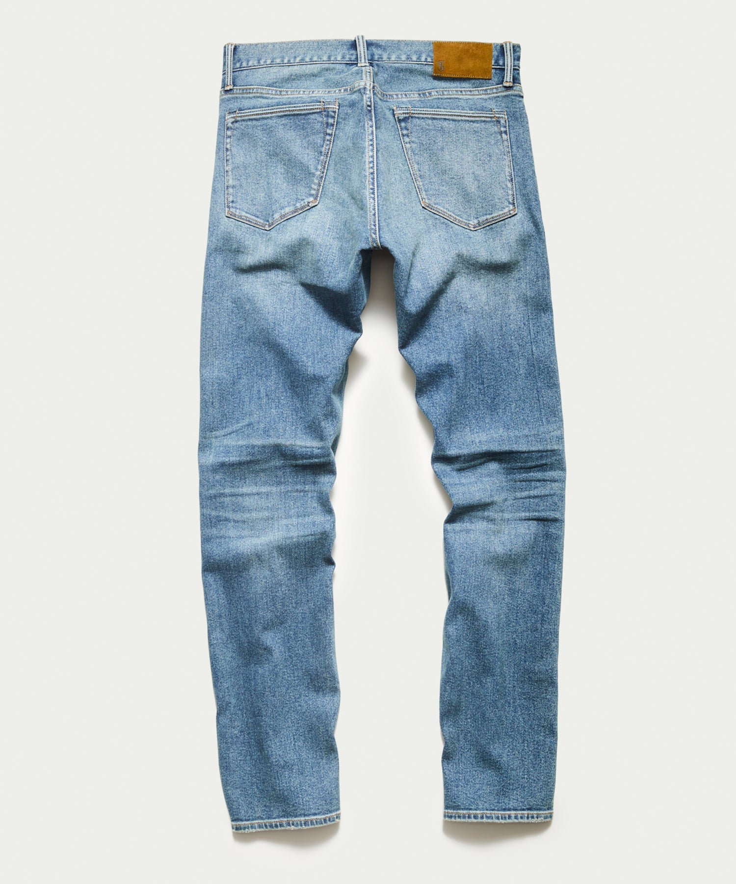 Our denim comes in distinct categories (Stretch, Selvedge and Small Batch), for the same reason that sometimes you want an artisanal sipping whiskey, and others a draft beer. Our Straight Fit Stretch Medium Indigo Wash Jean has all the quality and vintage-inspired design details of our Selvedge jeans but in a unique Stretch Fabric thatwill convert even the most resolute denim purist. (Try it. You’ll like it).The Medium Indigo Wash is our most popular. It has a broken-in look but not too faded, polished enough to pair with a blazer yet casual enough to be worn with a tee. Classic details include antique copper rivets, chain stitching on the coin pocket, a suede-embossed patch on the back and TS embroidery on the wearer’s right side. This is a perfect everyday jean.