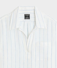 I'm 5'6" and bought a small. The sleeves are a little long, the fit is overall boxy and the bottom is very long. Shoulder width is acceptable since it's a relaxed fit.