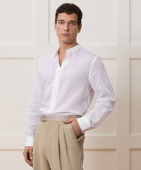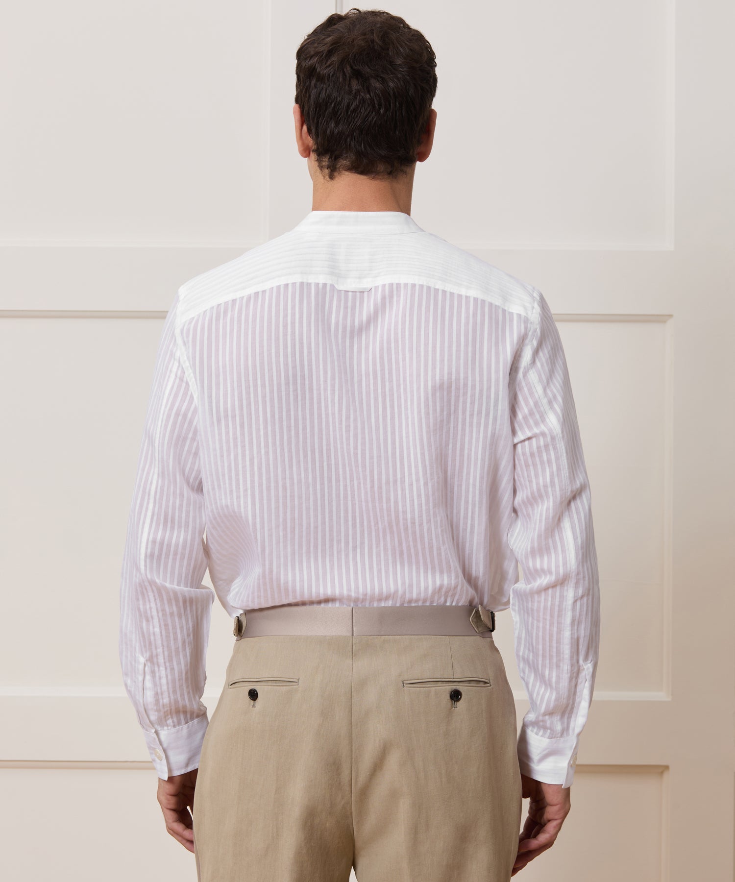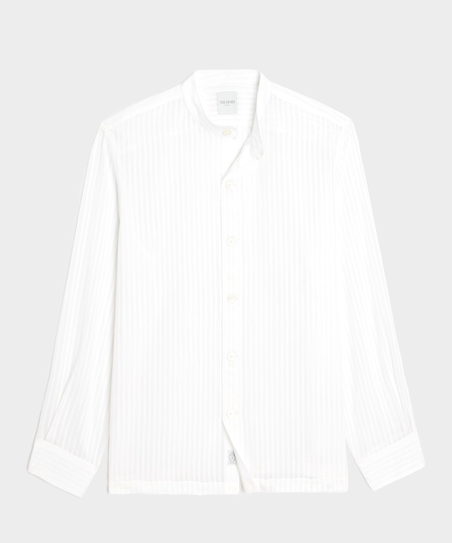 Straight off the runway, this Cotton-Silk Shirt pairs classic good looks with a modern, oversized fit. It’s just exaggerated enough to catch the eye, fuller than our Dress and Sport Shirts through the shoulders, chest and body, with a chic band collar and straight hem. It’s crafted from a soft, cool and sheer cotton-silk fabric woven in Italy that’s dressy enough to wear to a summer wedding. The lightness of it works just as well worn casually, untucked, or tucked into dress trousers and pulled out slightly to achieve that on-trend, voluminous look.