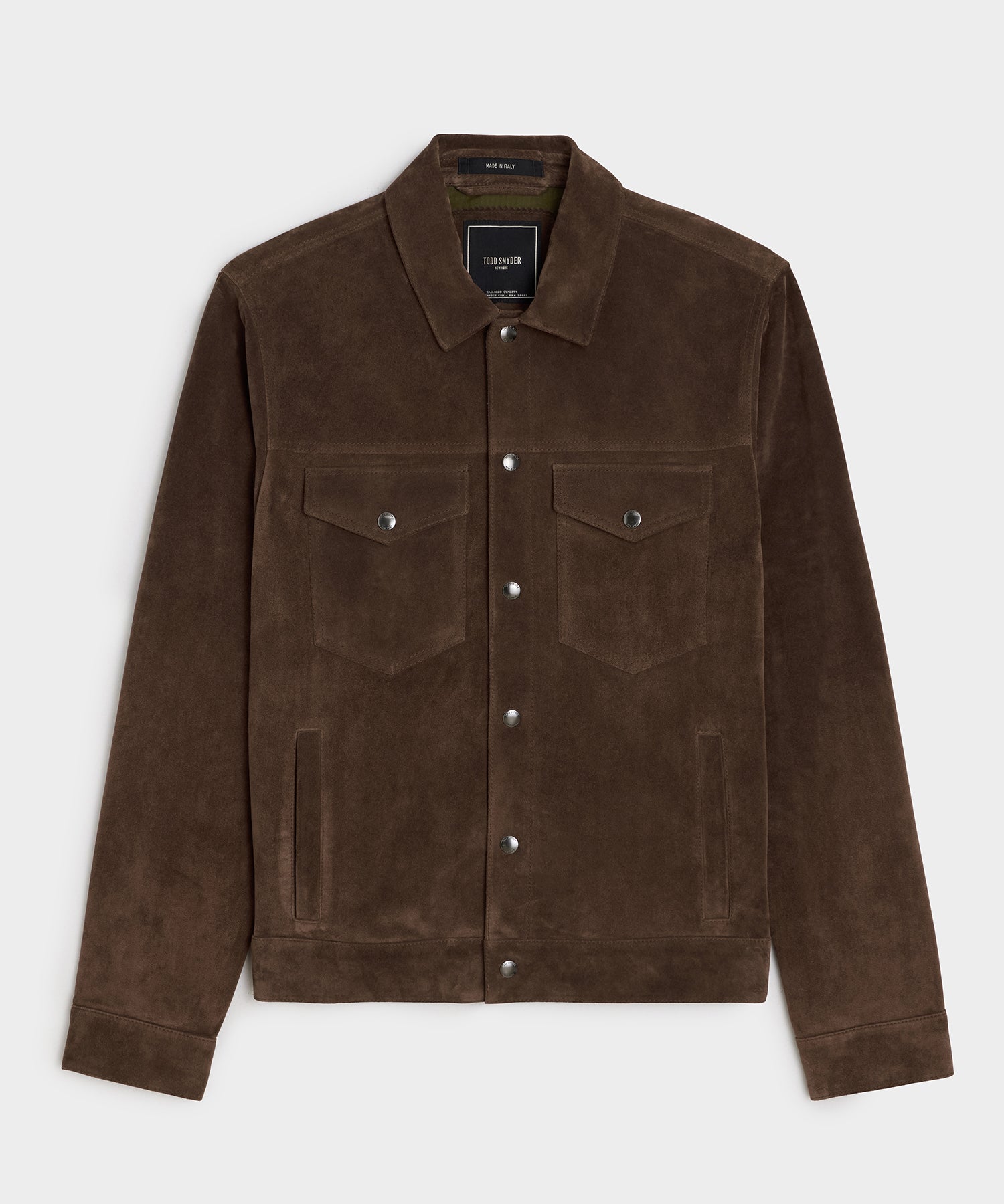 A staple that belongs in every man’s closet, the Dylan Jacket is a bestseller for a reason. To create this luxurious update on a time-honored classic, Todd took the body of a vintage trucker jacket and remade it in high-quality fabrics and materials. Case in point: this rich, Italian calf suede version in a goes-with-everything shade of chocolate brown. The result? An iconic style reimagined for a modern sensibility with a classic, flattering fit. Whether your style leans timeless or on-trend, this exceptionally well-crafted piece fits the bill.