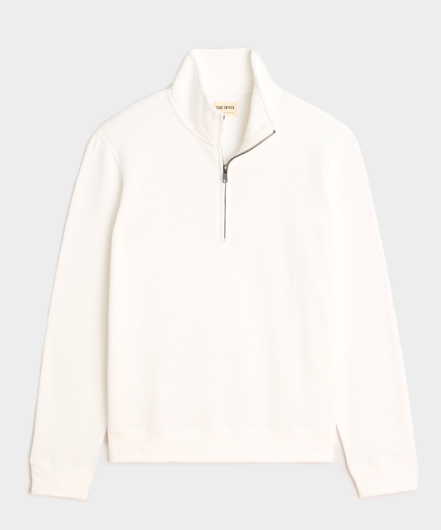 Todd worked with WS & Company, a family-owned factory in Canada prized by sweatshirt aficionados, to create a fabric that sits somewhere between classic French terry and a Jersey tee. The result is perfect for days when you want a lighter layer, and made to wear spring through fall. An easy pullover style, this Quarter-Zip is the perfect throw-on-and-go piece, with sturdy double-layered trim to help it hold its shape.