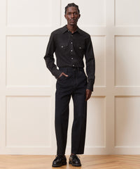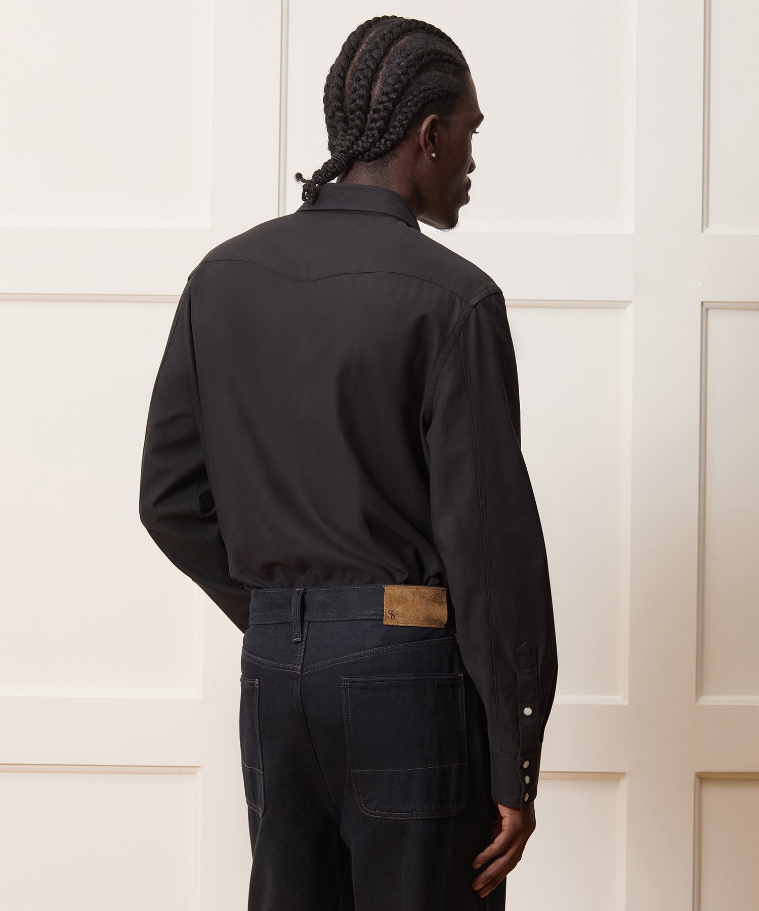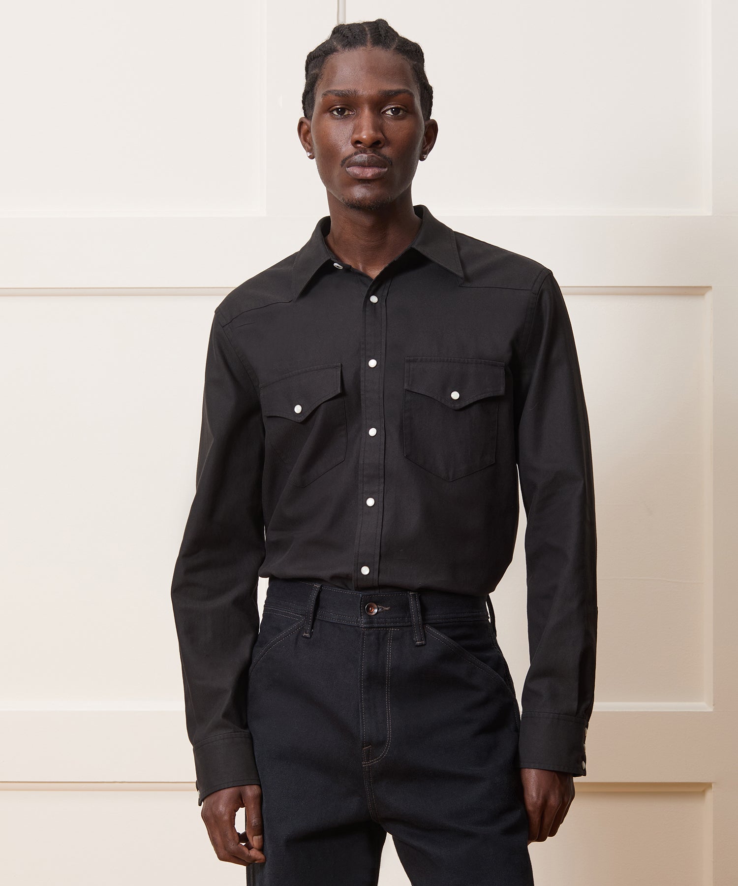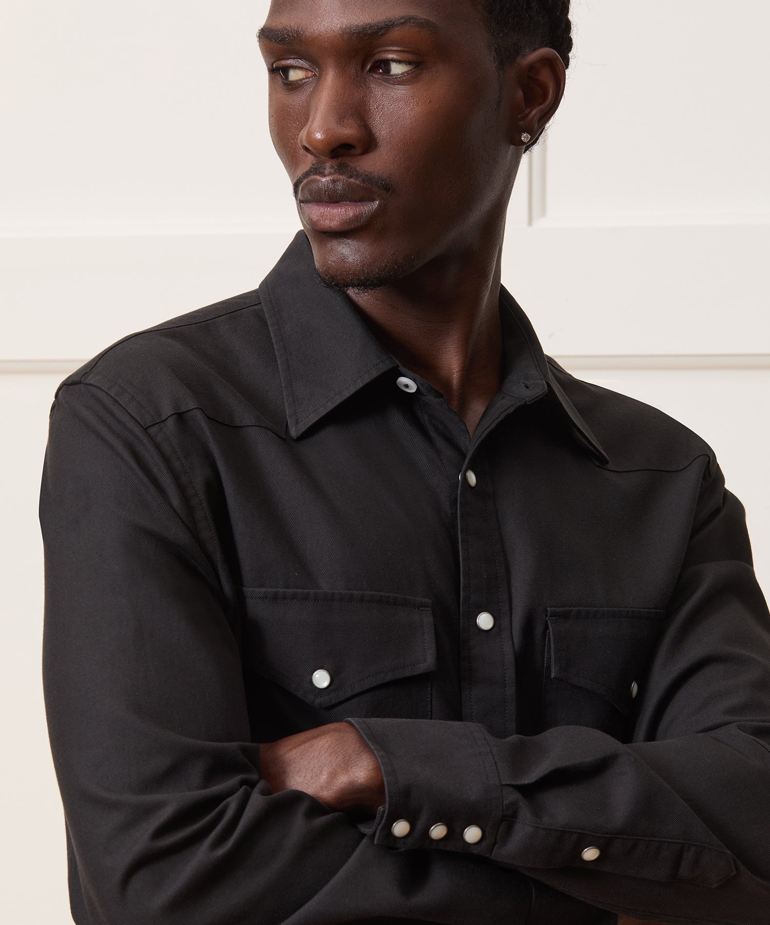 The charm of a vintage Western shirt in an elevated cotton and TENCEL™ blend. Traditional details include a yoke at both the chest and back, and snaps at the placket and cuffs in faux mother-of-pearl. Fun fact: Western shirts used snaps instead of buttons so that you could easily hold your reins in one hand while rolling up your sleeves with the other.