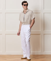 Textured Cropped Sea Soft Irish Linen Camp Collar Shirt