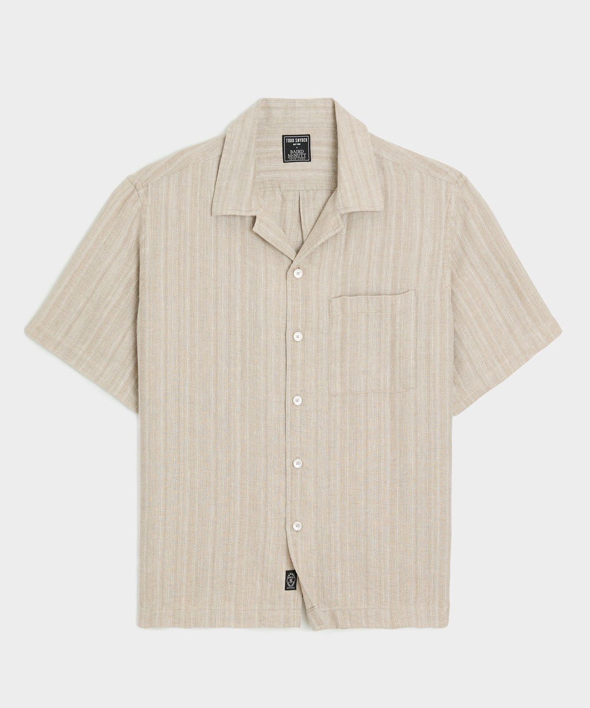 Textured Cropped Sea Soft Isiah Linen Camp Collar Shirt