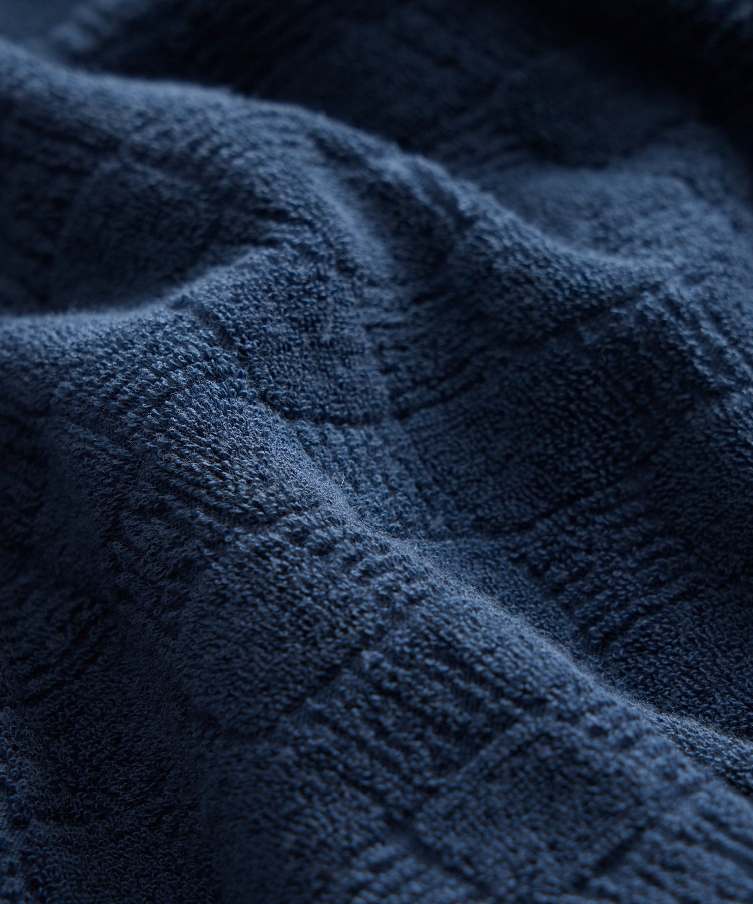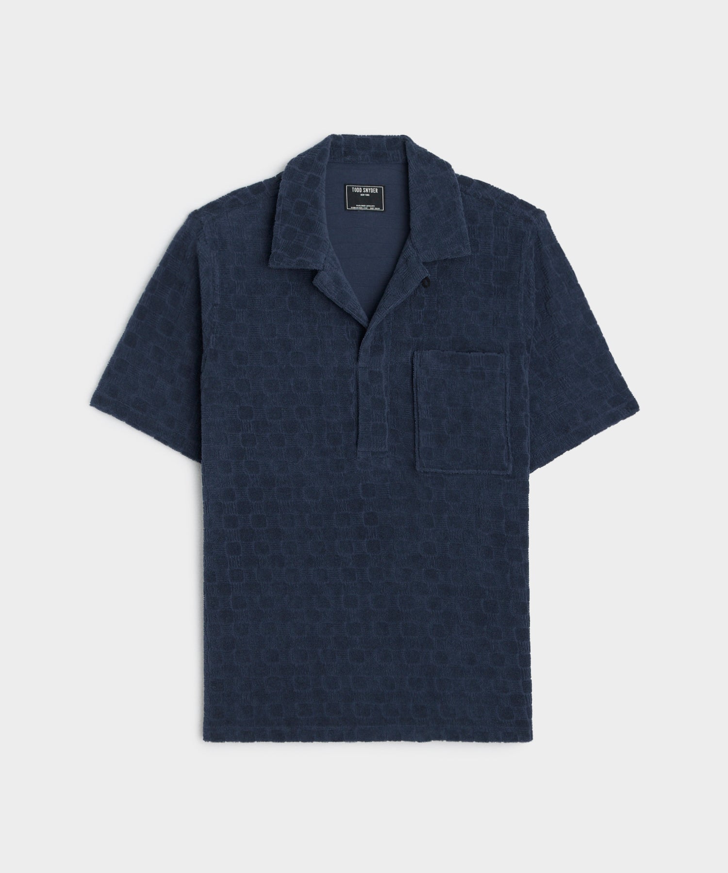 This retro-inspired polo is crafted from an Italian fabric with all the plushness of cotton terry and just a little extra drape for an easy fit and feel. It’s woven with a tonal jacquard pattern, creating a subtle, tiled effect. The buttonless placket is a chic touch, with a bartack midway up to keep it from falling all the way open. Toss it on with a pair of pull-on shorts for the weekend, or dress things up with chinos instead.