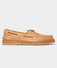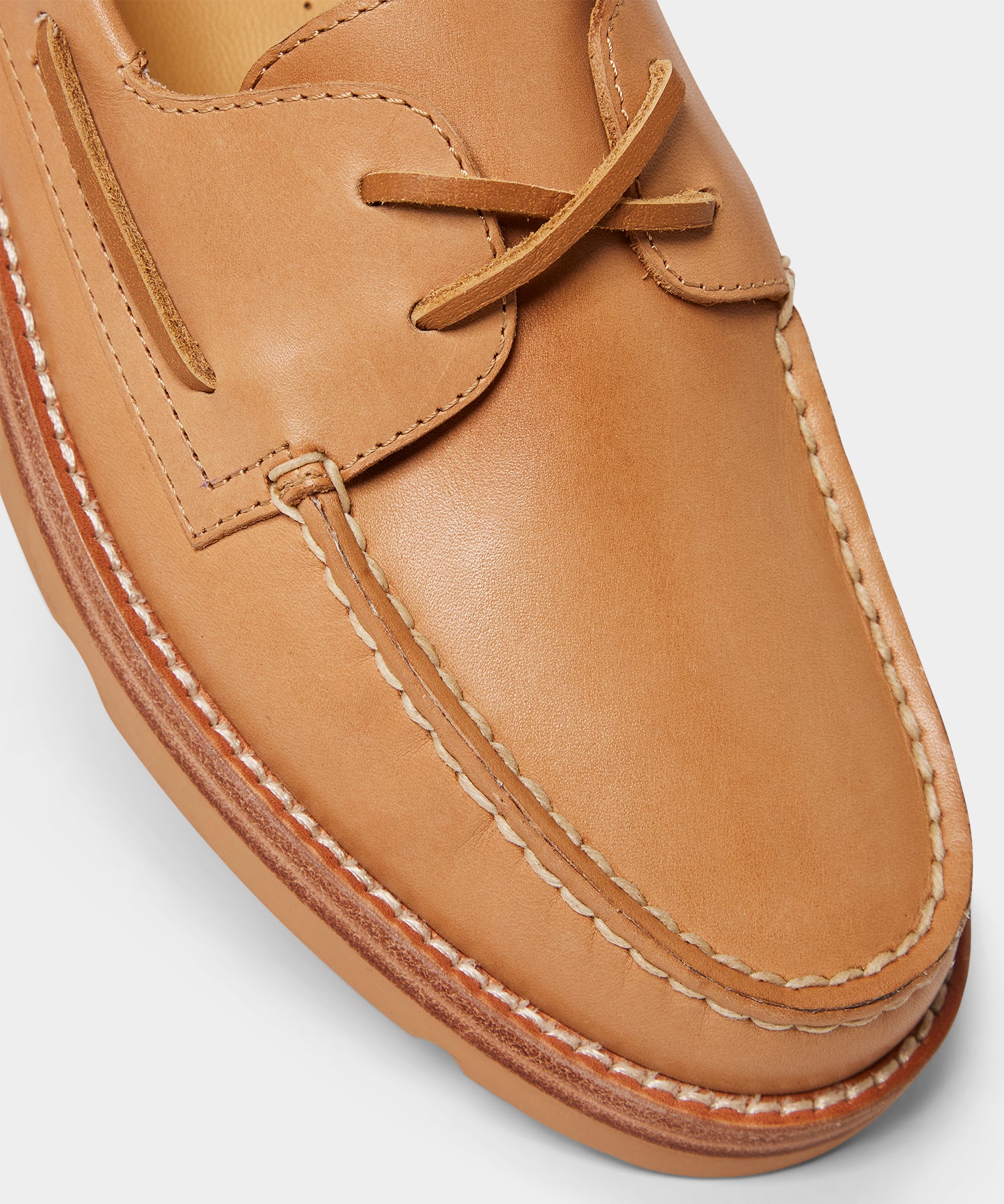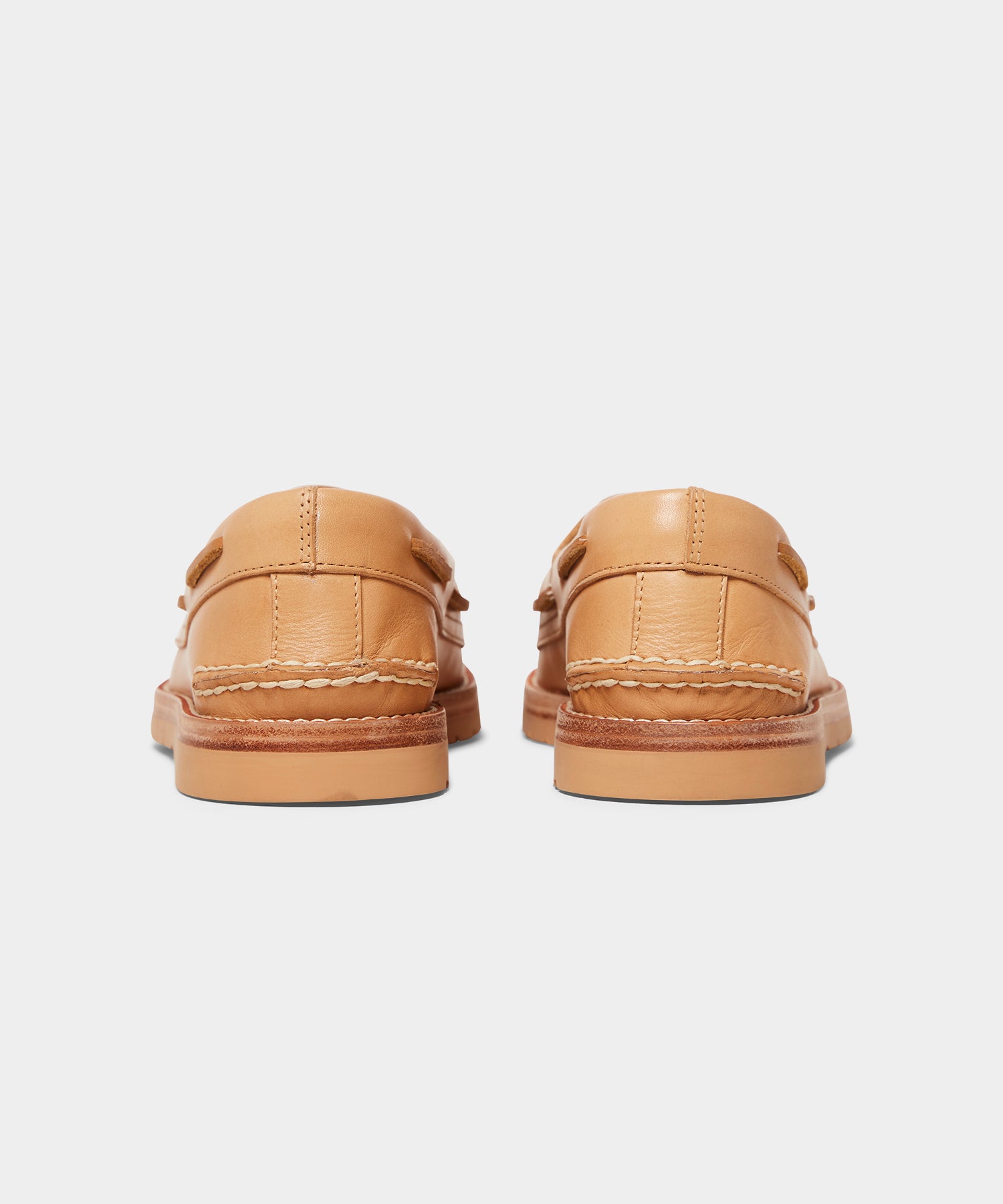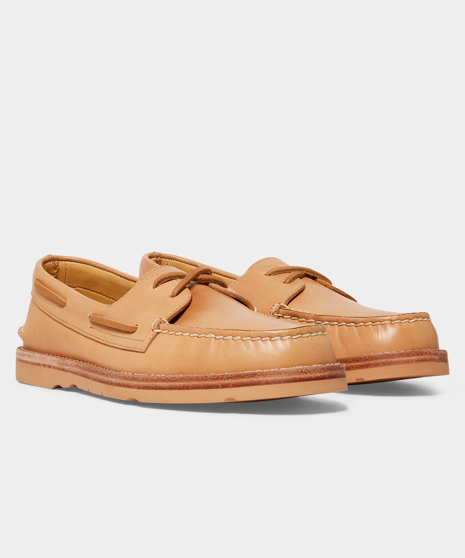 Leather is great, and nice color, shoe runs slightly larger than traditional Sherry TopSiders, the structured heel is nice for all terrains.