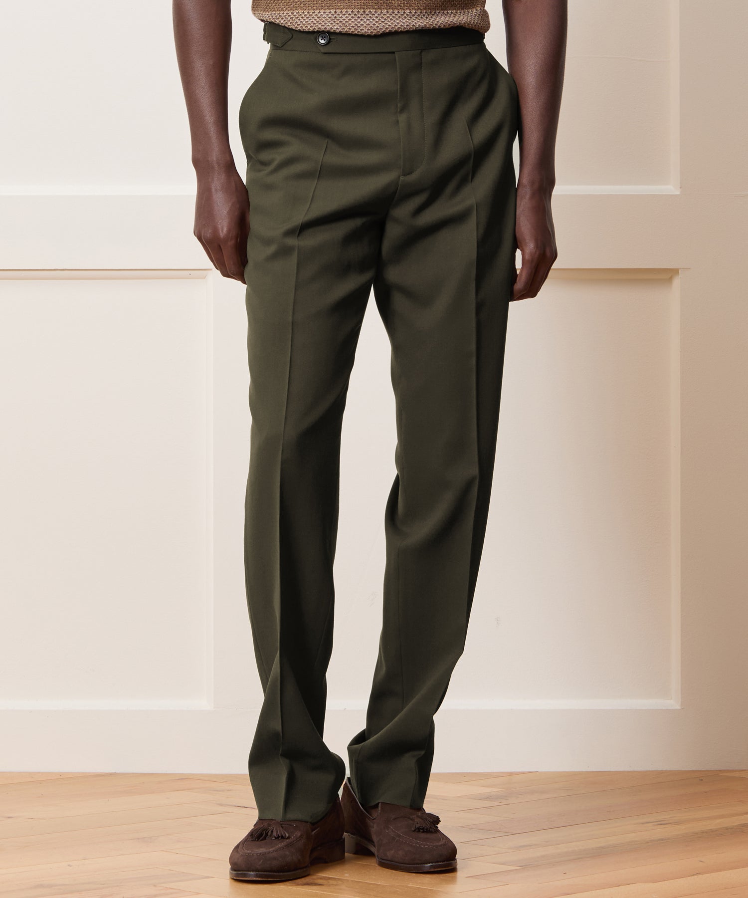 Everyone’s closet needs the perfect pair of trousers. These certainly fit the bill, crafted from an Italian gabardine, a type of twill worsted wool first introduced in the late 19th century. Lightweight, breathable and durable, our take is a transitional weight 4-ply wool with perfect drape. The silhouette has just enough on-trend fullness, falling straight through the leg, while a flat front keep things looking clean. Side adjusters and a split back at the waist complete the tailored detailing. Comfortable and chic, these versatile pants have become one of our newest go-to’s. Did we mention there’s a matching jacket, too?