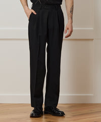 Our Wythe Trouser is a casual take on the traditional pleated trouser in a modern, oversized but tailored fit. A natural waist and double reverse pleats (which face out, away from the fly) lead to a relaxed fit through the legs for a vintage-inspired look. It’s crafted from an Italian gabardine, a type of twill worsted wool first introduced in the late 19th century. Lightweight, breathable and durable, our take is a transitional weight 4-ply wool with perfect drape. Wear with a Point Collar Shirt and suit jacket when you’ve got something formal on the calendar, or dress it down with a Sweater Polo.